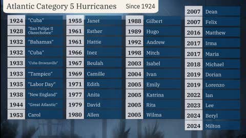 The list of Category 5 hurricanes that hit the Atlantic Basin from 1924 to early October 2024.